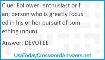 Career follower to mean one's professional journey ... Please find below the Career follower to mean one's professional journey crossword clue answer and solution which is part of Daily Themed Crossword February 22 2022 Answers.Many other players have had difficulties withCareer follower to mean one's professional journey that is why we have decided to share not only this crossword clue but all the Daily Themed Crossword Answers every single day. Carb- follower Crossword Clue - NYT Crossword Answers Carb follower NYT Crossword Clue Answers are listed below and every time we find a new solution for this clue we add it on the answers list. If you encounter two or more answers look at the most recent one i.e the last item on the answers box. Advertisement This crossword clue might have a … Carb- follower Crossword Clue Read More » Follower - crossword puzzle clues & answers - Dan Word Follower - crossword puzzle clues & answers - Dan Word Follower Today's crossword puzzle clue is a quick one: Follower. We will try to find the right answer to this particular crossword clue. Here are the possible solutions for "Follower" clue. It was last seen in The Daily Telegraph quick crossword. We have 11 possible answers in our database. Follower crossword clue - TheSunCrosswordAnswers.com Follower Follower While searching our database we found 1 possible solution for the: Follower crossword clue. This crossword clue was last seen on 5 February 2022 The Sun Coffee Time Crossword puzzle. The solution we have for Follower has a total of 7 letters. Answer 1 D 2 E 3 V 4 O 5 T 6 E 7 E