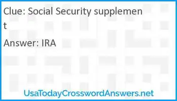 Supplement to Soc. Sec. perhaps crossword clue ... Below you may find the answer for: Supplement to Soc. Sec. perhaps crossword clue.This clue was last seen on Wall Street Journal Crossword March 18 2022 Answers In case the clue doesn't fit or there's something wrong please let us know and we will get back to you. If you are looking for older Wall Street Journal Crossword Puzzle Answers then we highly recommend you to visit our archive ...