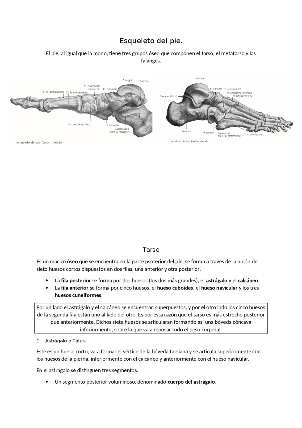 Hueso corto en la parte superior y media del tarso que se articula con la tibia