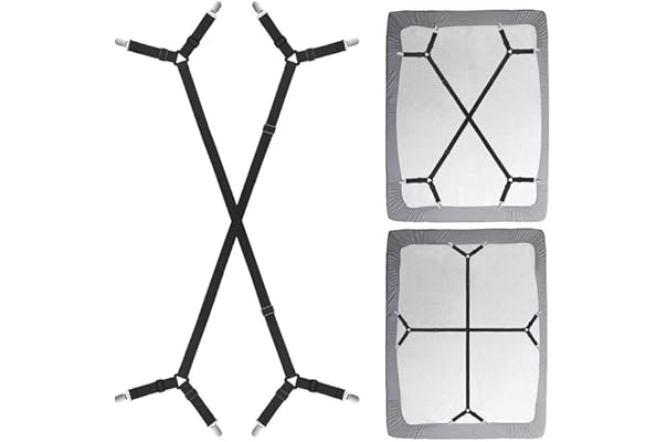 Lot de 2 sangles de fixation pour drap de lit, bretelles réglables, bande élastique croisée, support de drap-housse, drap plat, type long (noir)