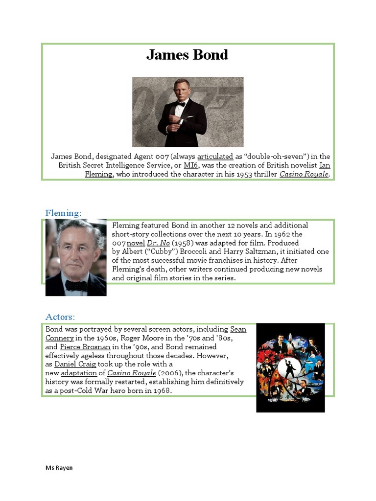 Ian Fleming Or James Bond - Crossword Clue Answers - Crossword Solver The crossword clue Ian Fleming or James Bond. with 7 letters was last seen on the August 30, 2015. We found 20 possible solutions for this clue. Below are all possible answers to this clue ordered by its rank. You can easily improve your search by specifying the number of letters in the answer. Flemings James Bond Crossword Clue - sporcle.com Flemings James Bond Crossword Clue For the word puzzle clue of flemings james bond, the Sporcle Puzzle Library found the following results. Explore more crossword clues and answers by clicking on the results or quizzes. 25 results for "flemings james bond" hide this ad RANK ANSWER CLUE QUIZ 97% OCTOPUSSY AND THE LIVING DAYLIGHTS