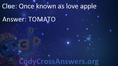 Love apple? Crossword Clue Answers Below are possible answers for the crossword clue Love apple?. 6 letter answer(s) to love apple? TOMATO. mildly acid red or yellow pulpy fruit eaten as a vegetable ; native to South America; widely cultivated in many varieties ; Other crossword clues with similar answers to 'Love apple?'